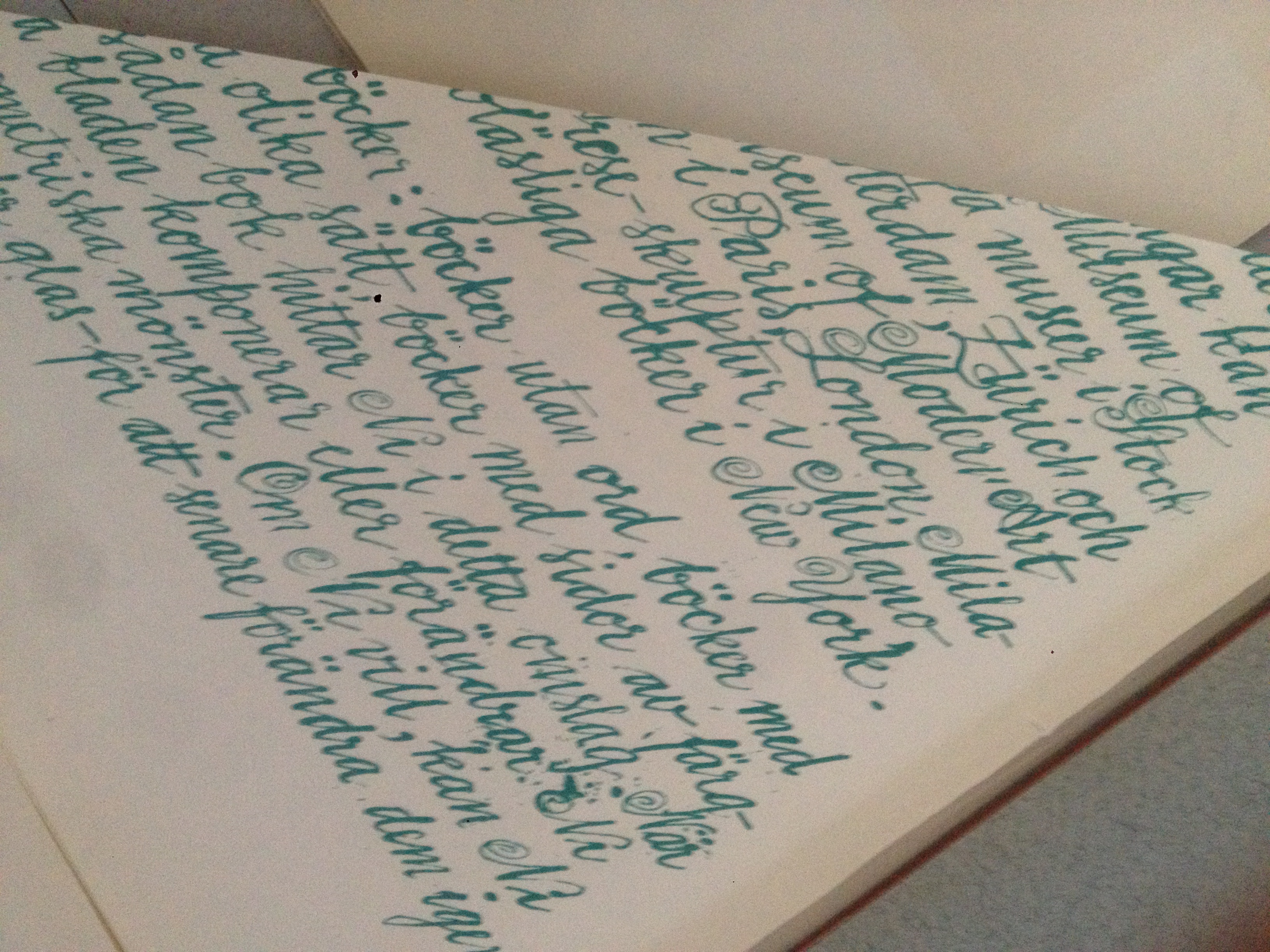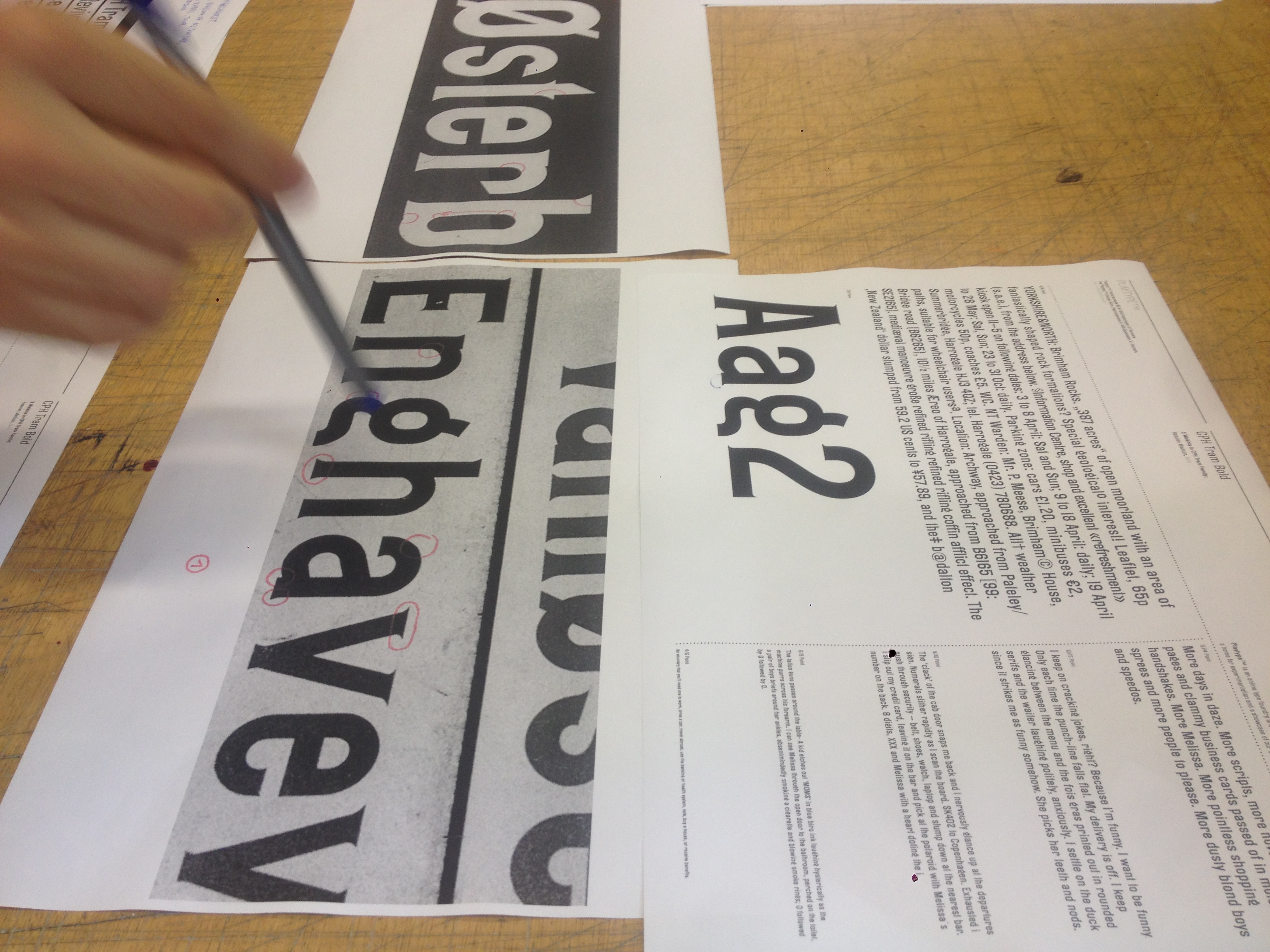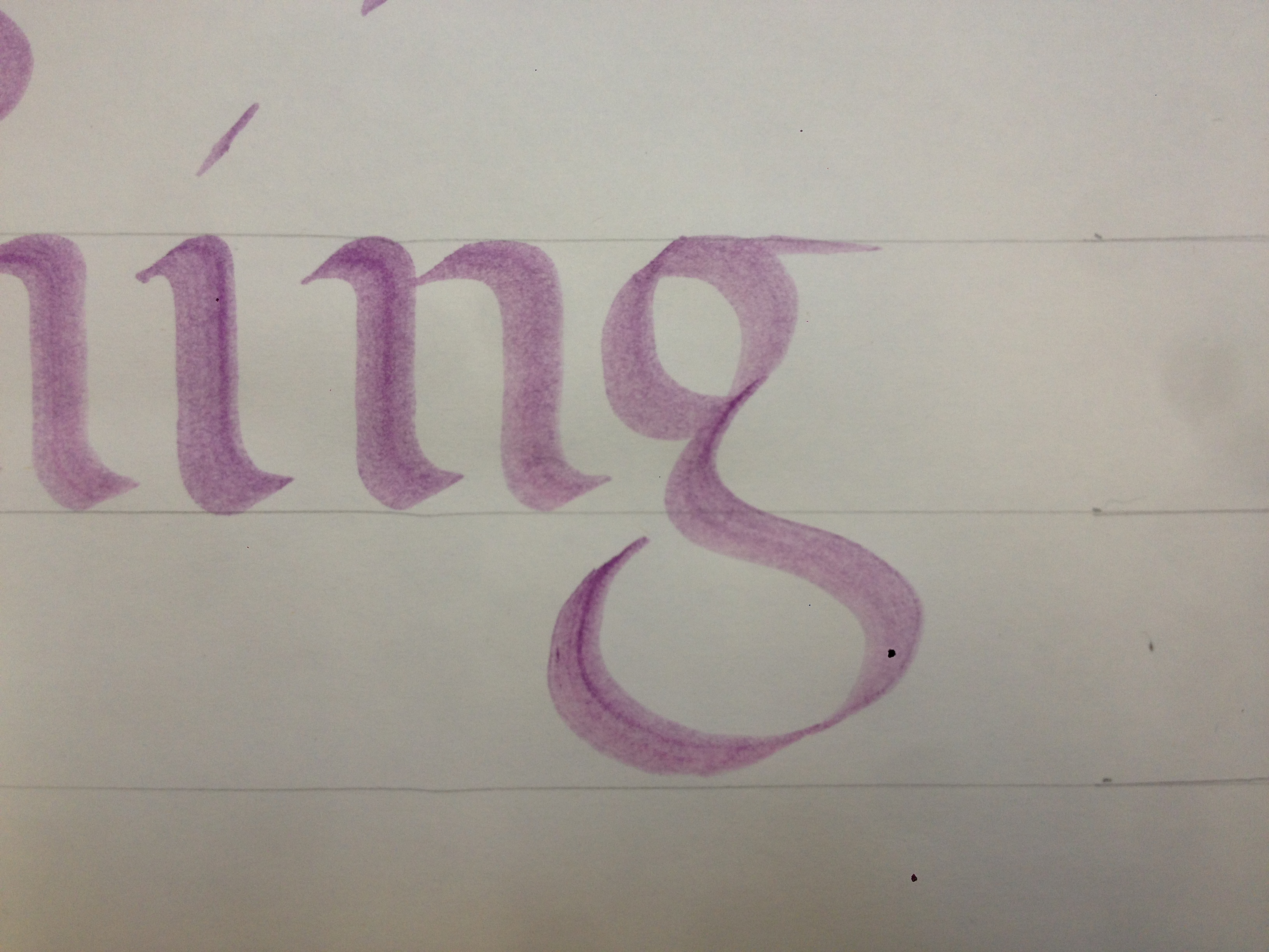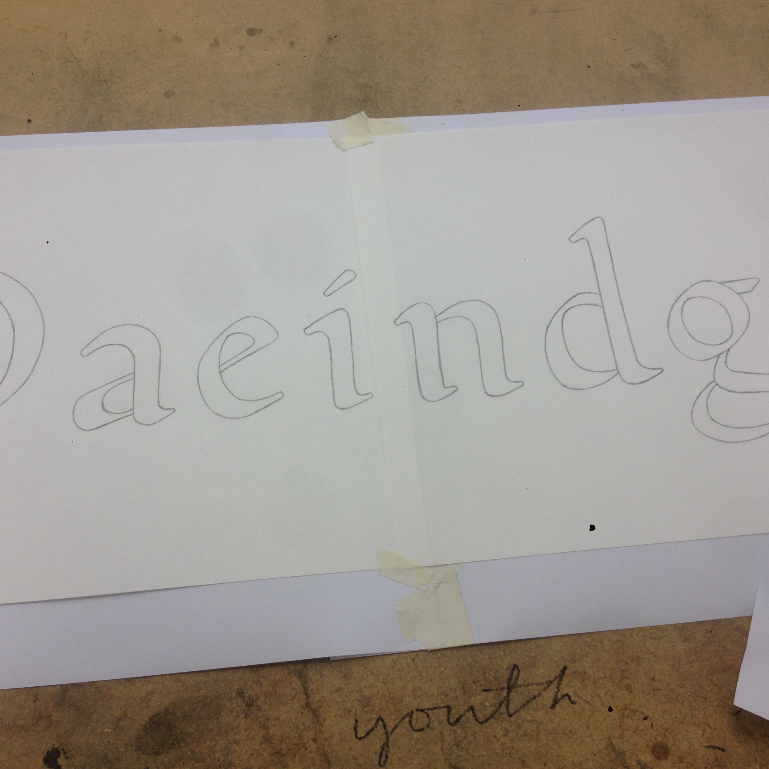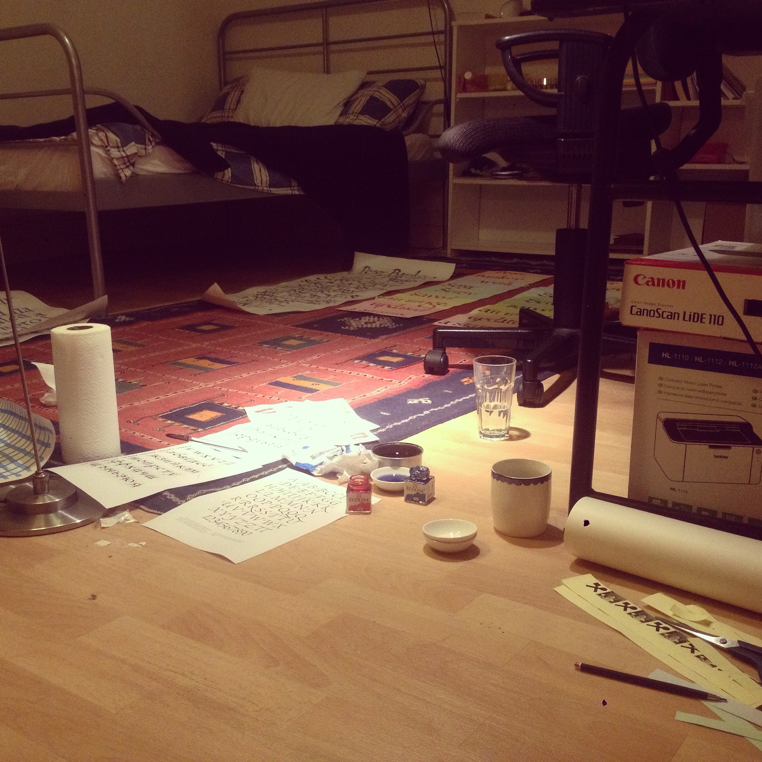 Days go, and you begin to realise that it’s all about the process. So many things start to happen that you have no time for anything. You spend more and more time at school. Come early in the morning and leave late in the evening. IMG_7539 You have lessons. IMG_7490 IMG_6980 Then you go to the shop, buy all the stuff for writing and start to practice. IMG_6959 First of all, writing with a brush. You write at school. You write at home. Everywhere 🙂 IMG_7289 IMG_6956 IMG_6963 IMG_6945 IMG_6946 You also write with a pointed nib. First week just all types of lines. Then you can start to write words. IMG_7010 IMG_7012 IMG_7016 Another important thing, apart from practise, is watching. You should look around as much as you can. Look for interesting books and letters. The more you see, the better. First of all, you have lectures where you see lots of everything. Supernice, but if we are told about something, we can see it live. It’s a totally different impression, when you look at the book in reality, not on the screen. Thanks to Jan Willem Stas for that. IMG_7390 IMG_7051 IMG_7054 IMG_7029 IMG_7025 IMG_7045 IMG_7046 IMG_7047 IMG_7067 IMG_7096 IMG_7098 IMG_7071 IMG_7070 IMG_7075 IMG_7084 IMG_7411 IMG_7091 IMG_7092 IMG_7106 IMG_7125 We have excursions too. Amsterdam Special Collections last week, Gemeentemuseum next week. IMG_7253 IMG_7186 IMG_7189 IMG_7194 IMG_7198 IMG_7210 IMG_7212 IMG_7213 IMG_7458 IMG_7232 IMG_7238 IMG_7259 IMG_7269 School library. They have an amazing second floor there. And many-many books about everything. IMG_7378 IMG_7353 IMG_7359 IMG_7360 IMG_7363 When you look at things you always see something interesting for your work there. For example, I found a book on the flee market. A Baedeker guide around Paris, 1907. It has really amazing engraved maps. So I tried some of the letter shapes from there for my writing with a pointed nib. IMG_7428 IMG_7423 IMG_7424 IMG_7339IMG_7391 IMG_7392 Now we gradually move from writing to drawing. But writing is a basis. Our first assignment looks like this. We take a brush, and write HO aeon (b, d, p, q) gost. Then, we use this writing as a skeleton for our drawing of these letters. Normal contrast. So you write first, then draw the pencil outlines on marker paper (it is transparent), then revise spacing and draw again with a black marker.