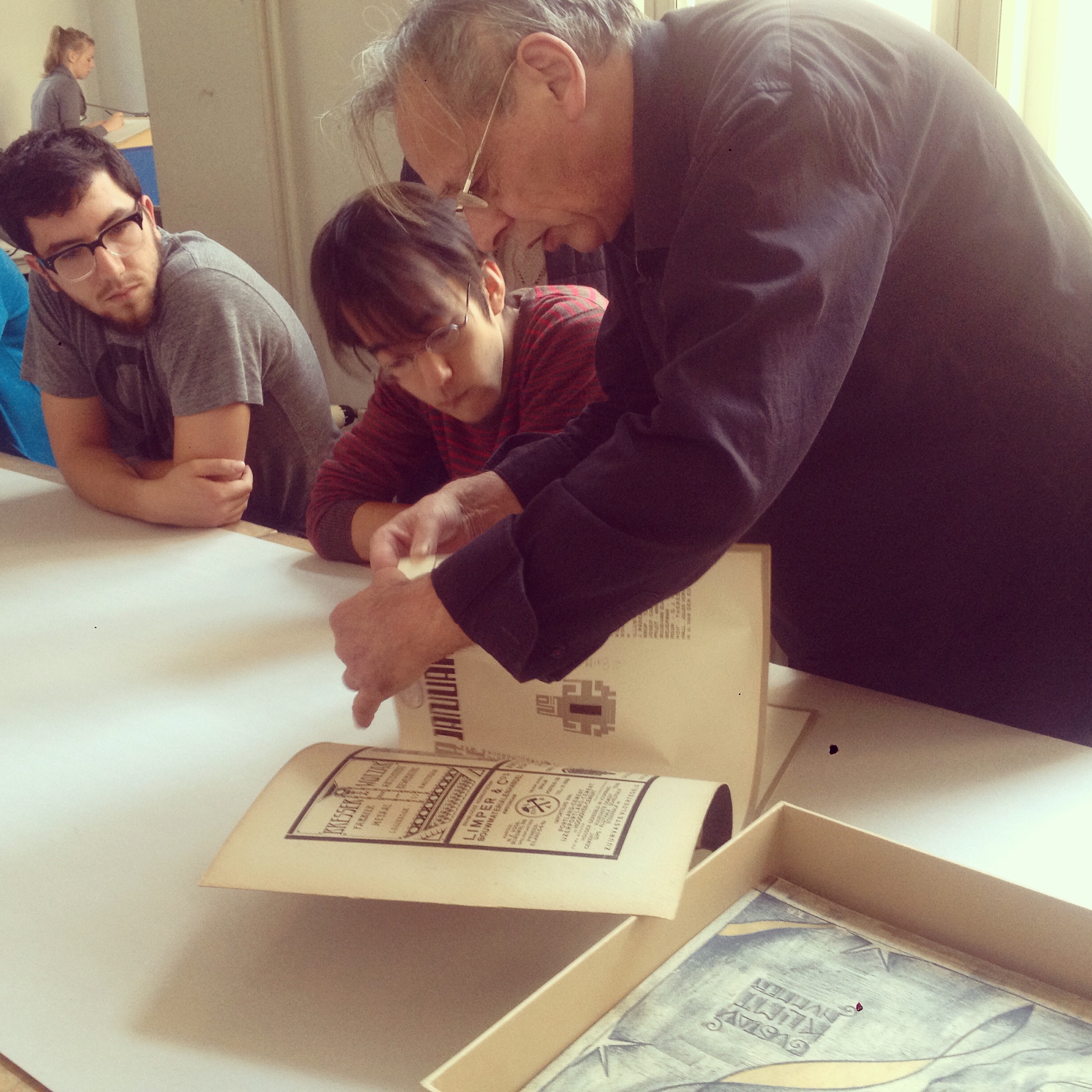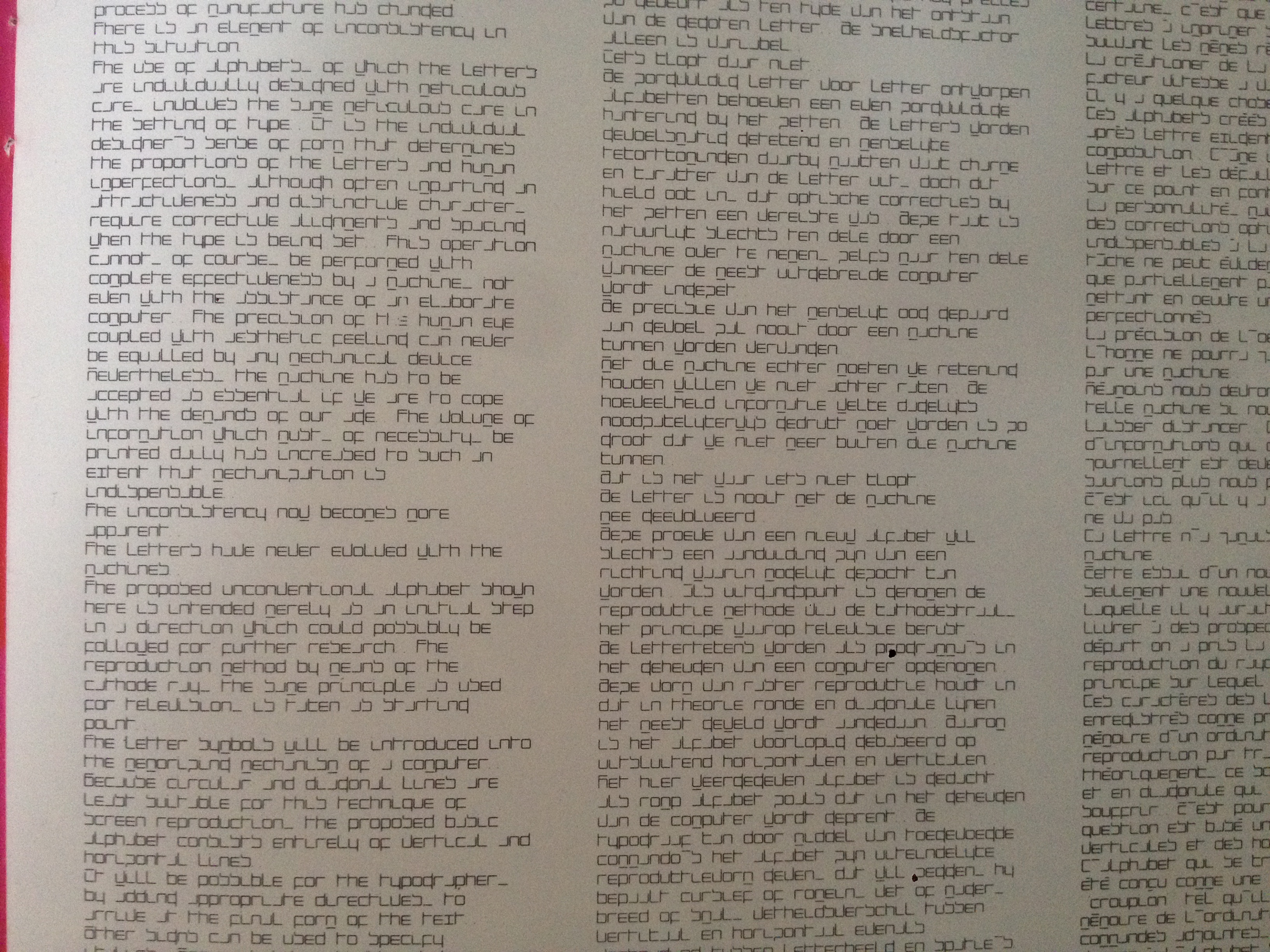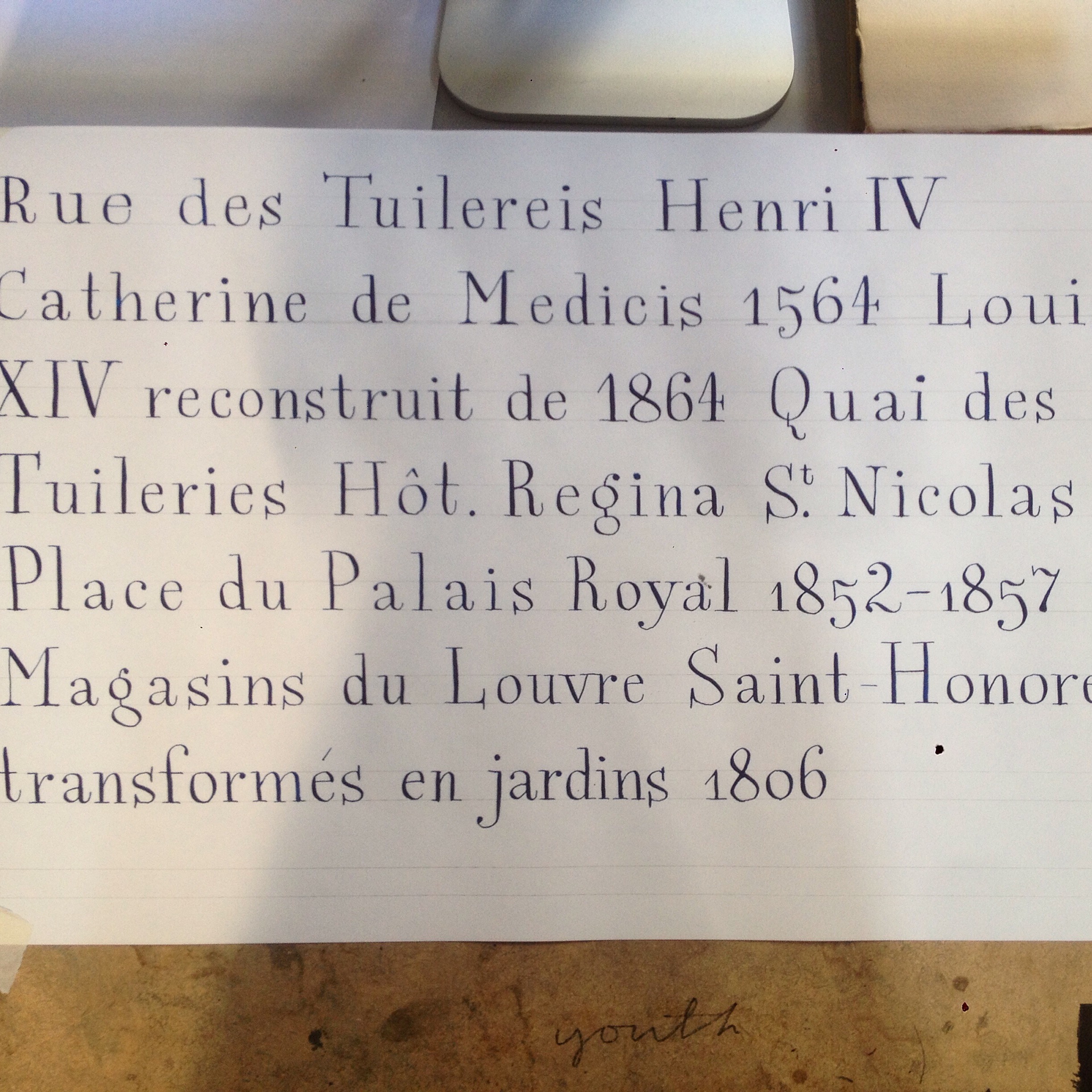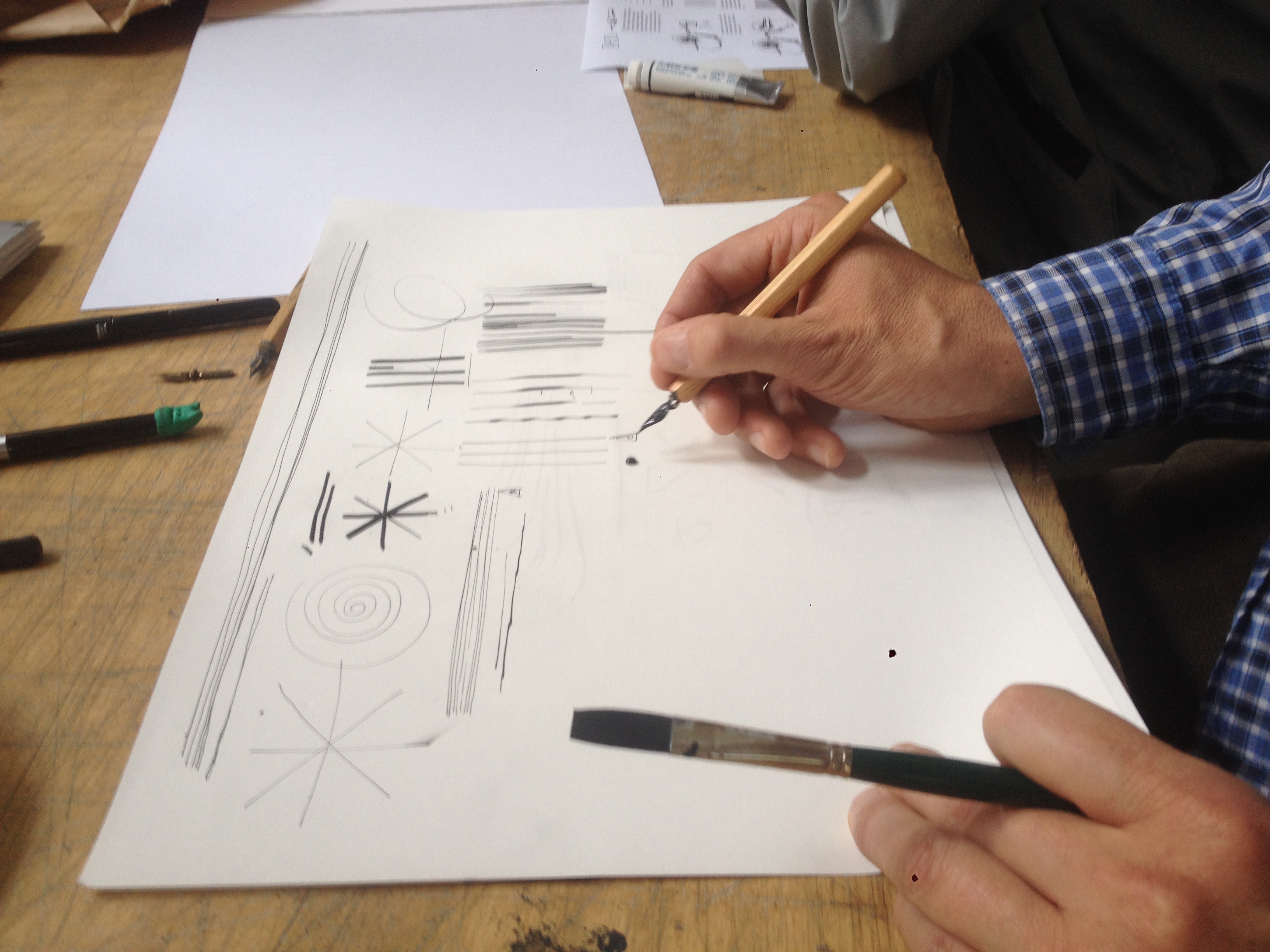 Days go, and you begin to realise that it’s all about the process. So many things start to happen that you have no time for anything. You spend more and more time at school. Come early in the morning and leave late in the evening. IMG_7539 You have lessons. IMG_7490 IMG_6980 Then you go to the shop, buy all the stuff for writing and start to practice. IMG_6959 First of all, writing with a brush. You write at school. You write at home. Everywhere 🙂 IMG_7289 IMG_6956 IMG_6963 IMG_6945 IMG_6946 You also write with a pointed nib. First week just all types of lines. Then you can start to write words. IMG_7010 IMG_7012 IMG_7016 Another important thing, apart from practise, is watching. You should look around as much as you can. Look for interesting books and letters. The more you see, the better. First of all, you have lectures where you see lots of everything. Supernice, but if we are told about something, we can see it live. It’s a totally different impression, when you look at the book in reality, not on the screen. Thanks to Jan Willem Stas for that. IMG_7390 IMG_7051 IMG_7054 IMG_7029 IMG_7025 IMG_7045 IMG_7046 IMG_7047 IMG_7067 IMG_7096 IMG_7098 IMG_7071 IMG_7070 IMG_7075 IMG_7084 IMG_7411 IMG_7091 IMG_7092 IMG_7106 IMG_7125 We have excursions too. Amsterdam Special Collections last week, Gemeentemuseum next week. IMG_7253 IMG_7186 IMG_7189 IMG_7194 IMG_7198 IMG_7210 IMG_7212 IMG_7213 IMG_7458 IMG_7232 IMG_7238 IMG_7259 IMG_7269 School library. They have an amazing second floor there. And many-many books about everything. IMG_7378 IMG_7353 IMG_7359 IMG_7360 IMG_7363 When you look at things you always see something interesting for your work there. For example, I found a book on the flee market. A Baedeker guide around Paris, 1907. It has really amazing engraved maps. So I tried some of the letter shapes from there for my writing with a pointed nib. IMG_7428 IMG_7423 IMG_7424 IMG_7339IMG_7391 IMG_7392 Now we gradually move from writing to drawing. But writing is a basis. Our first assignment looks like this. We take a brush, and write HO aeon (b, d, p, q) gost. Then, we use this writing as a skeleton for our drawing of these letters. Normal contrast. So you write first, then draw the pencil outlines on marker paper (it is transparent), then revise spacing and draw again with a black marker.
