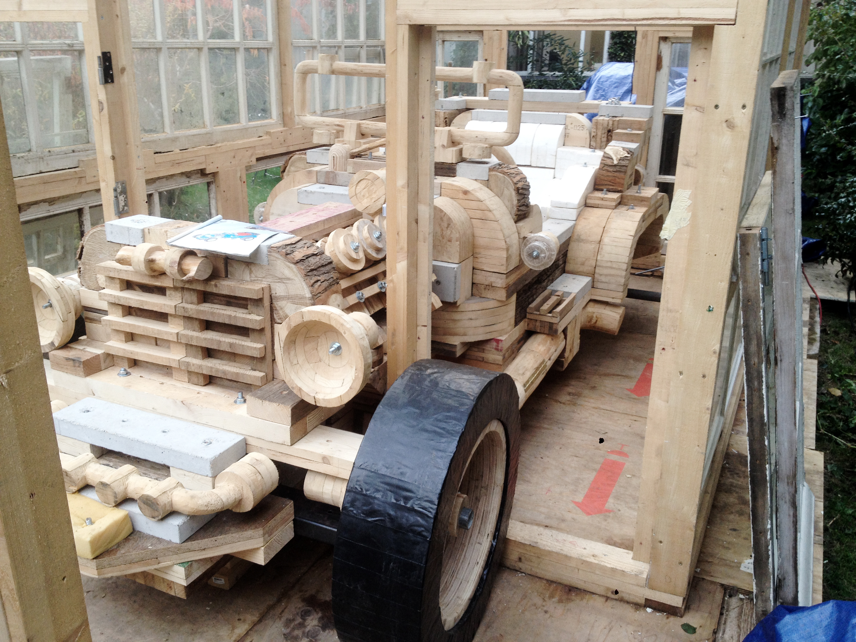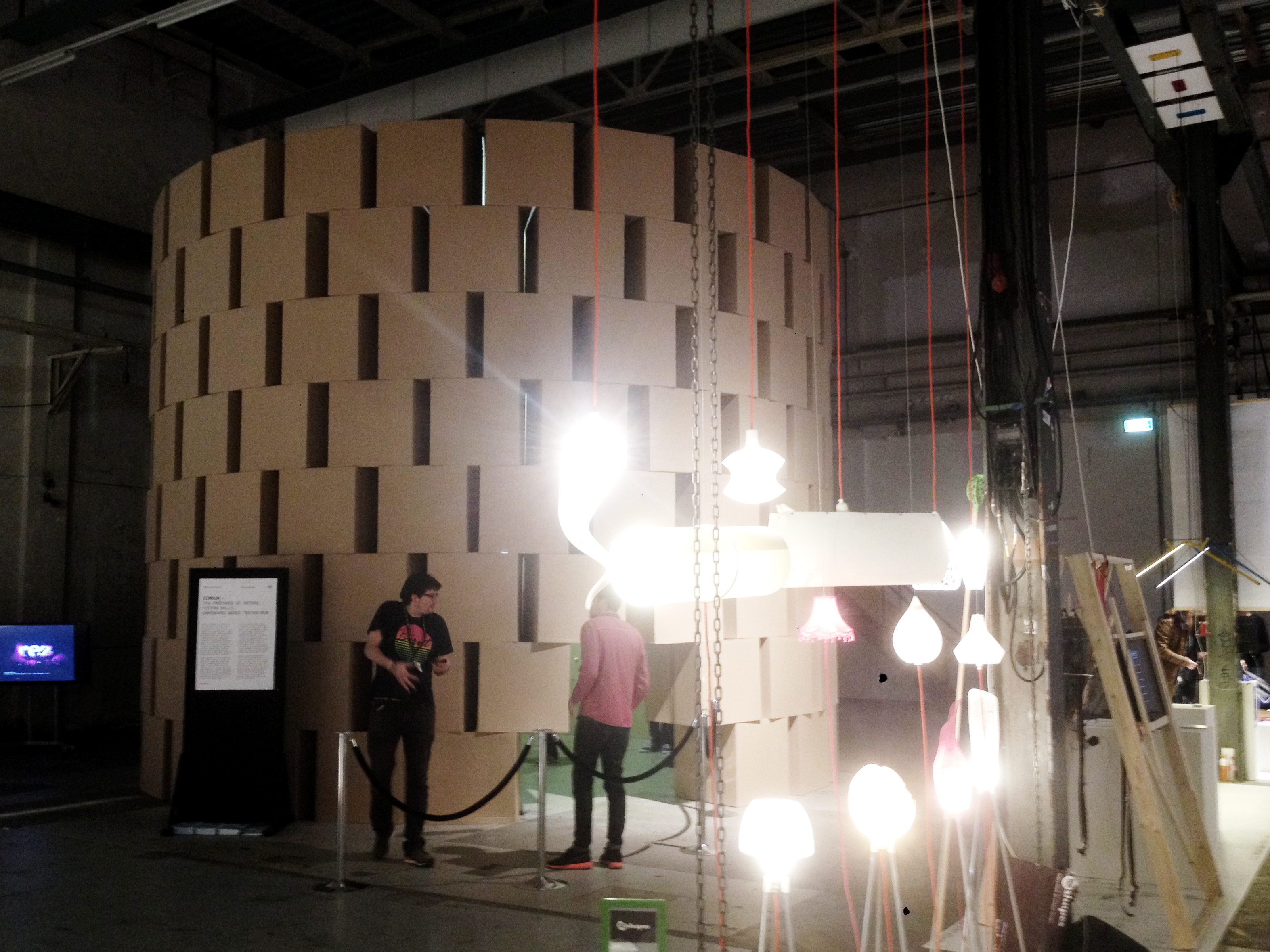 Some things are pure art. Huge thing from a cardboard. Go inside, and hundred of rubber balls will bang on these walls in random order and imitate sound of falling rocks.